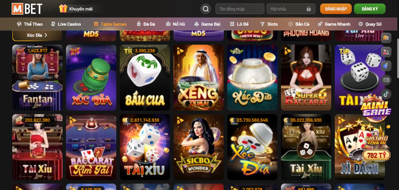 Ngoài cược bóng đá online, MBET còn mang đến kho game phong phú:
